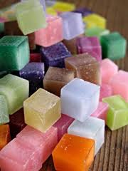 キューブ形に切った色付きロウを